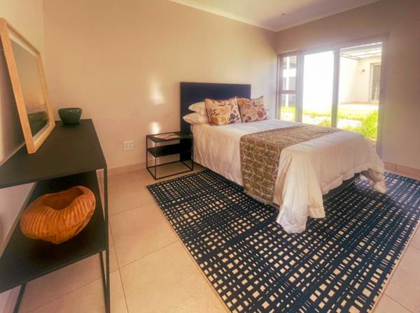Discover an exquisite modern sanctuary nestled within a prestigious security estate in Sheffield Beach, Ballito. This sophisticated 150 sqm residence epitomizes contemporary luxury, offering a harmonious blend of elegant design and seamless indoor-outdoor living. The luminous open-plan interior encompasses a chic lounge, a dedicated dining area, and a state-of-the-art kitchen, all bathed in abundant natural light streaming through expansive sliding glass doors. These doors effortlessly connect the living spaces to a private paved patio and a verdant lawn, creating an idyllic setting for relaxation and entertaining.