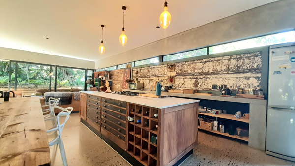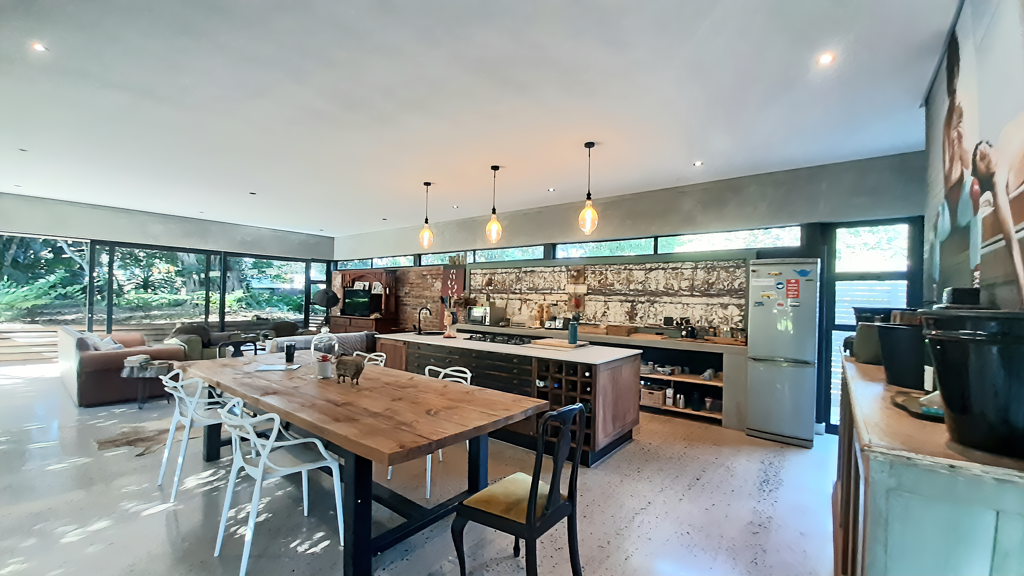 Clean lines, expansive windows, and open-plan living areas create a seamless connection to the outdoors, allowing natural light and forest views to define the interior spaces. The layout is well-suited to both entertaining and everyday living, with living and dining areas that extend effortlessly into the garden.