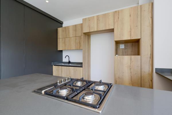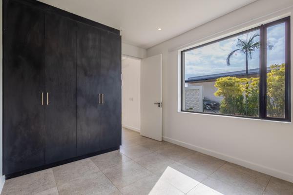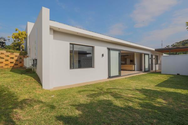 Level home in Elaleni Gardens. This modern, newly built home comprises of an open plan living area opening out onto a level garden with space for a pool. Access from the double parking bay with pergola.