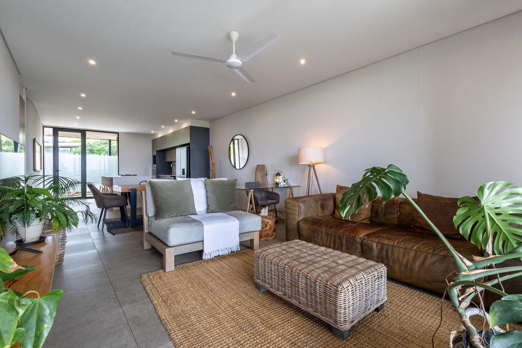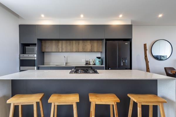 SOLE MANDATE | This modern two-bedroom, two-bathroom apartment is located in Elaleni. It offers an open-plan kitchen, dining, and living area that leads out to a covered balcony. The main bedroom features an open-plan layout with a full en-suite bathroom, while the second bedroom is serviced by a separate bathroom. Both bedrooms are fitted with air conditioning, and the kitchen includes a gas stove and contemporary finishes throughout.