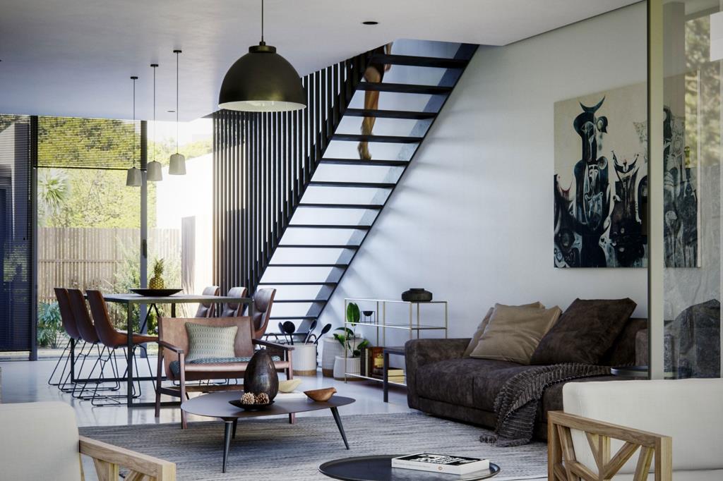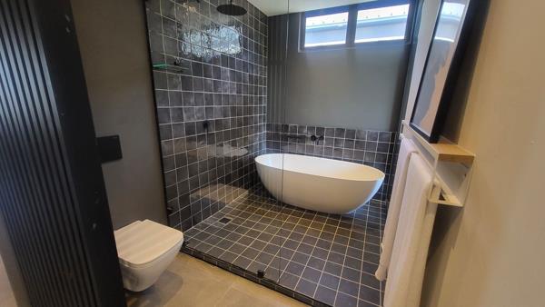 Contemporary three bedroom Forest-View apartment within Elaleni . This contemporary three bedroom apartment, situated at The Woods, Elaleni Estate, offers secure and convenient living in a serene environment. With a dual-level layout, this apartment features a private pine forest view garden and is pet friendly, a highly desirable feature for estate living. The ground floor encompasses an open plan living area, featuring a striking dark colored kitchen that seamlessly transitions into the dining and lounge areas. These spaces lead out to a covered patio, enhancing the indoor outdoor living experience. Moving to the upper level, you''ll find three bedrooms, each accompanied by beautiful and upscale bathrooms.
