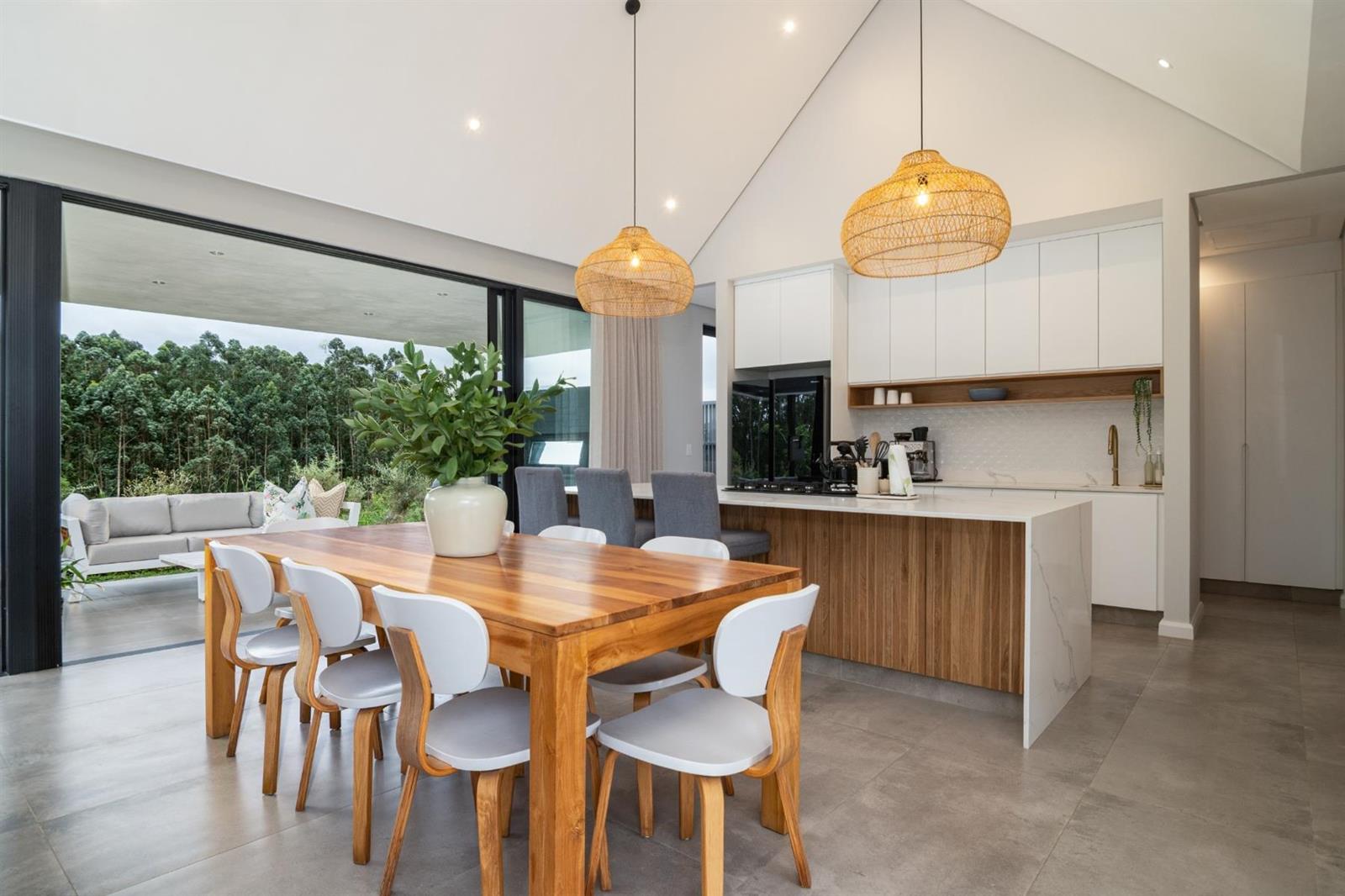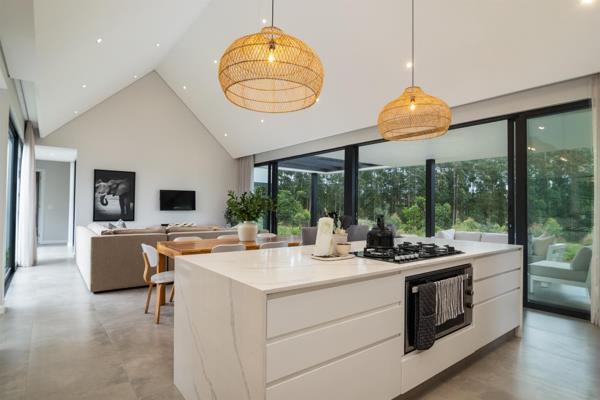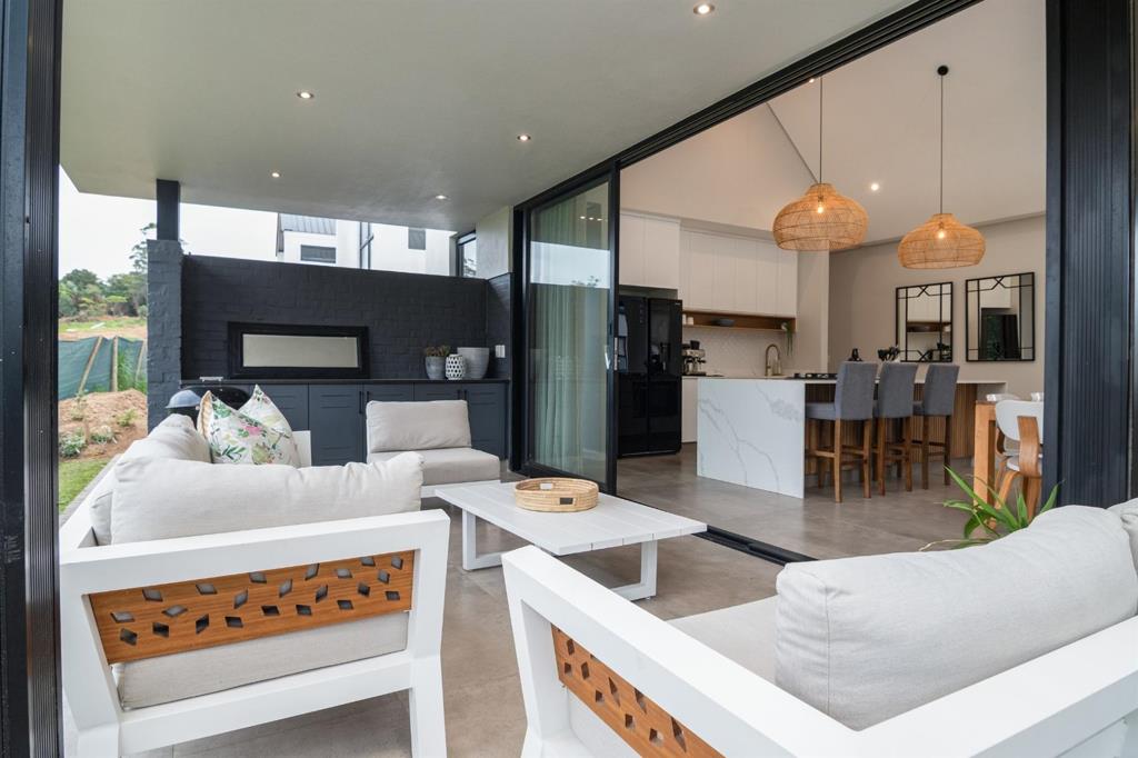 EXCLUSIVE MANDATE: This newly constructed 3-bedroom, 3-bathroom home seamlessly combines luxury with functionality. Featuring a modern country-style design, its neutral colour palette exudes timeless elegance. The open-plan layout, enhanced by high ceilings, creates a spacious flow between the lounge, dining area, and chefs kitchen. These spaces open onto an expansive covered patio, perfect for entertaining, while the lounge connects to a sheltered garden, promoting excellent airflow throughout the home.