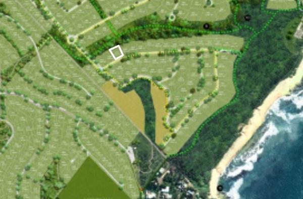 A level site in Seaton Estate. Gentle flow downward off the road onto a level platform. Future forest servitude in front of the site will ensure future privacy from surrounding properties. The location will give close access to the beach gate.