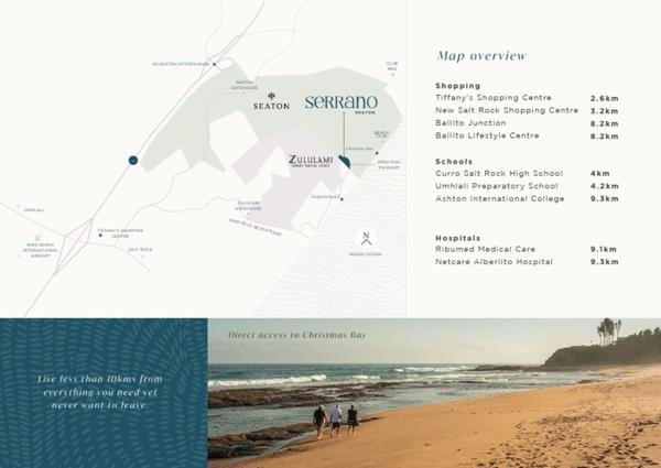 Best of all, you''ll have direct beach access to Christmas Bay right from your home at Serrano! Enjoy leisurely strolls along your very own 1 km of private coastline, or take advantage of the fantastic clubhouses in the area. Whether you prefer the Country Clubhouse with its restaurant and sports facilities, the Beach Clubhouse by Christmas Bay, or Zululamis Wetlands Clubhouse, theres something for everyone to enjoy.