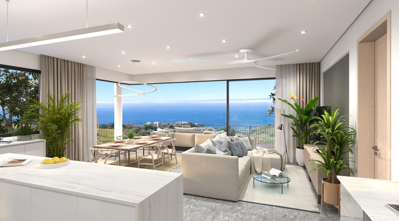 The kitchen, lounge and dining area all open out onto a large covered wraparound balcony, with spectacular Sea Views