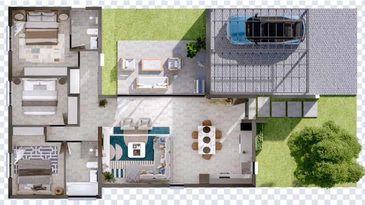 A covered parking area is included, with the option to enclose it into a secure garage. The estate is pet-friendly and offers an array of lifestyle amenities, including a clubhouse with a restaurant, Padel and tennis courts, and beautifully landscaped surroundings. With a new on/off ramp scheduled for completion in 2026, access to the highway and surrounding areas will soon be even easier.