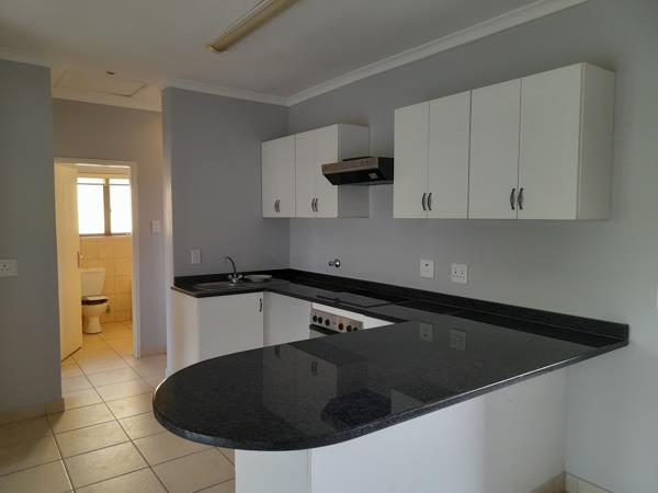 The Sheffield Garden complex in Sheffield Beach offers a tranquil lifestyle, and this top-floor apartment is an ideal place to call home. Fully tiled throughout, the unit features three well-sized bedrooms, each fitted with built-in cupboards, wooden blinds, and ceiling fans for year-round comfort.