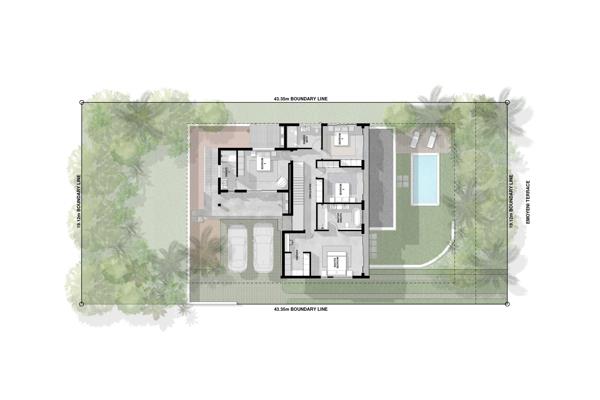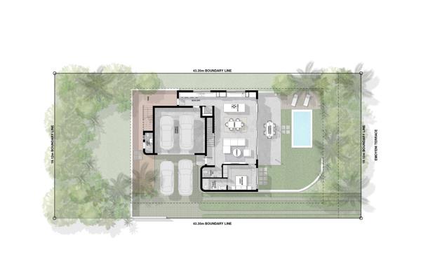 Luxury home with high end finishes in Zululami Luxury and Coastal Estate. The expansive lower level comprises of the living and entertainment spaces. The kitchen features a large centre island, 4 burner gas stovetop, ample cupboard space and a separate scullery with courtyard access. The living space opens through sliding doors to a spacious covered patio and entertainment space overlooking the pet friendly garden and private pool. An en suite guest bedroom leads off the living area with patio access.