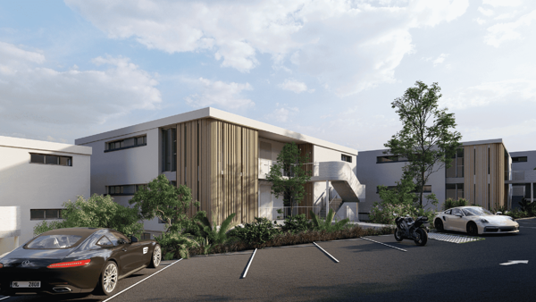 This contemporary minimalist estate showcases a sleek and refined design, characterised by clean lines and fluid indoor-outdoor living. Large glass doors and windows flood each space with natural light and enhance airflow, while warm wood accents, glass balconies, and a neutral palette of white, beige, and natural wood tones create a modern yet welcoming atmosphere. Every unit includes private landscaped gardens, generous terraces, and abundant greenery, blending sophisticated architecture seamlessly with the surrounding natural environment.