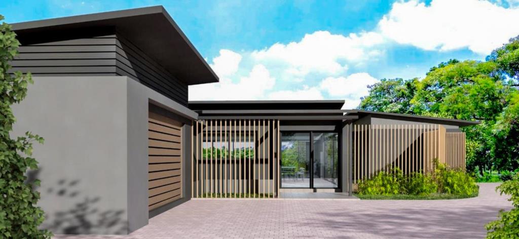 The property has a lovely gentle slope, and the house will be set high above the road, offering great views. Youll find approved plans for a stunning 335-square-meter modern single-story home just waiting for your personal touch! The land is close to the main gate and walking paths.