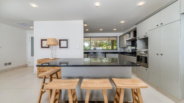 As you enter, youre welcomed by a spacious open-plan living area and an elegant kitchen featuring a center island and discreet scullery, ideal for both style and practicality. The living space flows effortlessly onto a partially covered patio with a private swimming pool and breathtaking sea views, perfect for entertaining or relaxing.