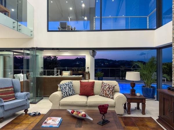 Positioned to capture uninterrupted views across Simbithis lush valley and peaceful dams, this remarkable home offers a rare combination of privacy, outlook, and refined living. The raised landscaped garden has views over the greenbelt, creating a natural extension of the homes expansive indoor-outdoor flow. Whether enjoying the morning light or unwinding in the evening with soft, low light, caressing the serene surroundings.