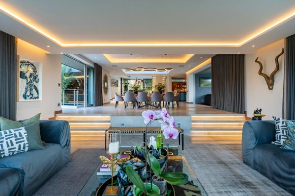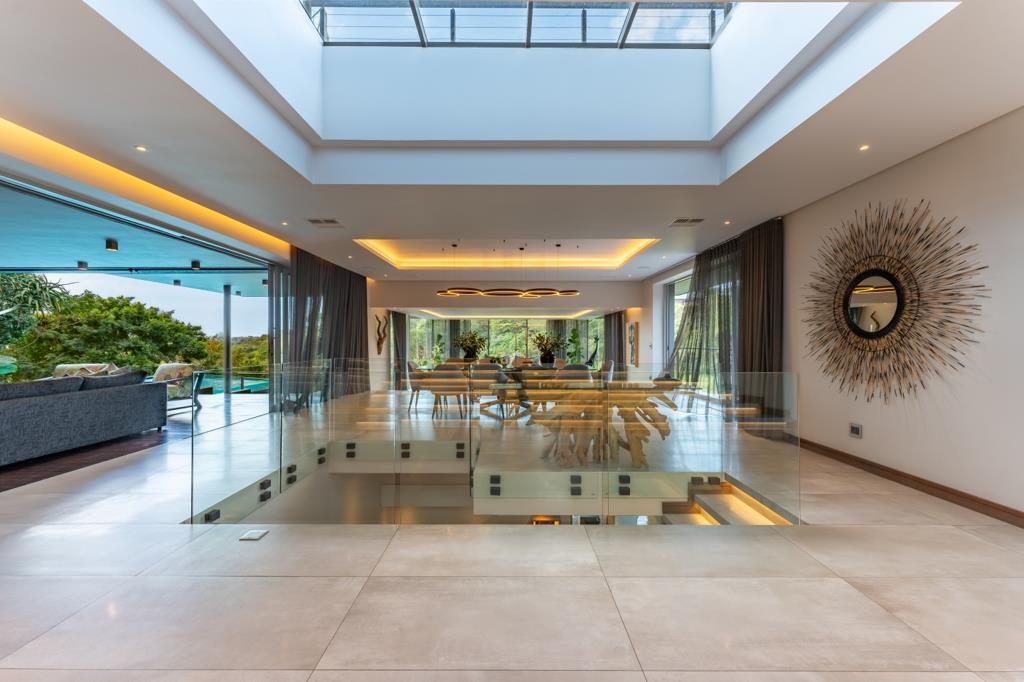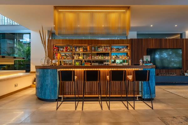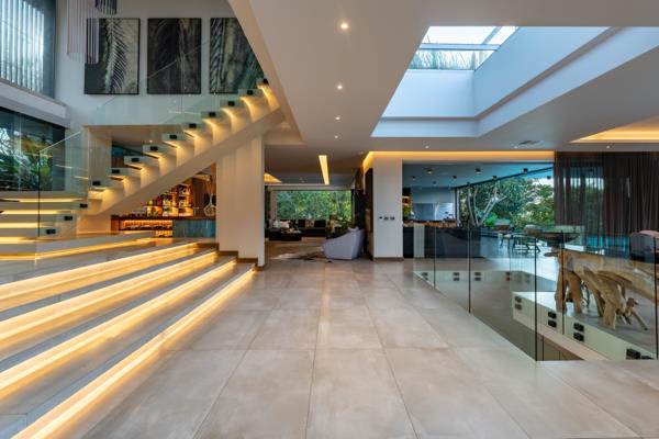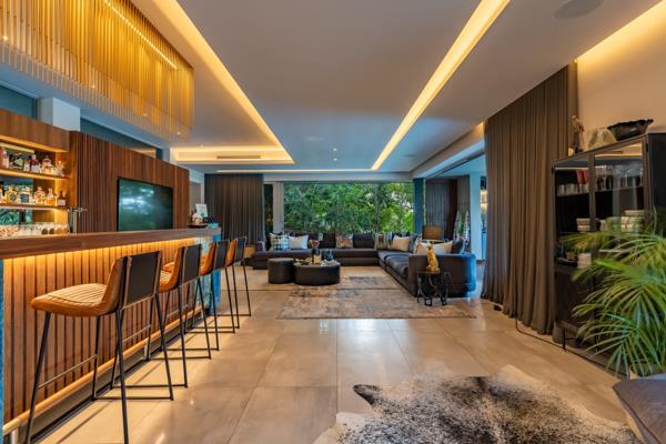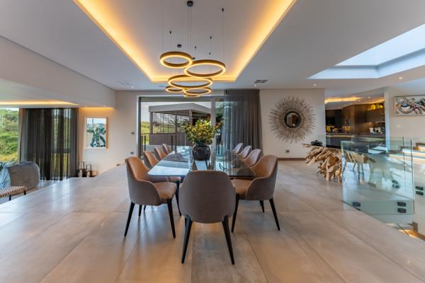 This triple-storey residence in Simbithi Estate offers uninterrupted views over the 17th green and delivers an exceptional standard of design and finish. The home features a suspended rim-flow pool, rooftop garden, and a seamless flow between expansive indoor and outdoor entertainment spaces. The main level includes multiple lounges, dining areas, cocktail bars, and a state-of-the-art kitchen, all thoughtfully arranged across dual wings for optimal function and flow.