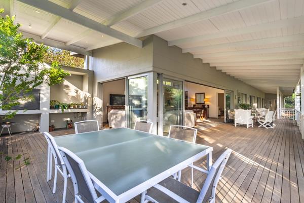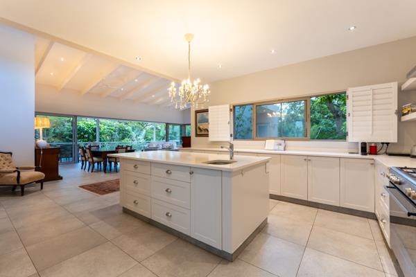 SOLE MANDATE | Luxury open plan family home. On entrance this single level home features double volume ceilings, adding to the brightness of the home. The open plan living area features the lounge, dining area, large kitchen and a separate TV lounge. The kitchen is fitted with a centre island, gas hob, ample cupboard space, separate pantry, scullery, and laundry. Leading off the kitchen is a covered patio overlooking the private garden and pool. The lounge and dining room leads out to the outdoor decked entertainment space with a built-in braai and greenbelt views.