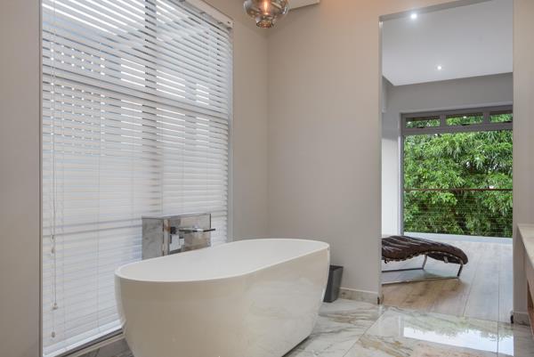 The main suite is the ultimate WOW factor. The 40 square meters walk in closet and adjoining private lounge is something to behold. The bedroom is flooded with natural light and the ensuite bathroom will delight the most discerning. The self-contained flatlet situated above the garage is perfect for adult kids or extended family. The lower ground level suite has a unique oversized window into the swimming pool creating dappled light throughout this space.