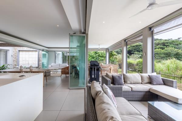 Inclusive of transfer duty. No transfer duty payable, the property price includes VAT. This north facing double level home is situated in Simbithi''s Golf Estate. On entrance, the stairs lead you down to the lower level of this home which comprises of an open plan kitchen, dining room and formal lounge extending to a well sized covered patio and entertainment area. A separate tv lounge opens to a small patio. The kitchen features a centre island with bar stool seating, gas hob and separate scullery. Frameless glass folding doors create indoor, outdoor living appeal through to the entertainment area overlooking the level garden and pool. All bedrooms are air-conditioned and have patio access. Three en-suite bedrooms are situated on the lower level with one being the master. The master features a walk-in-closet, double vanity, stand-alone bath, indoor shower and an outdoor shower.