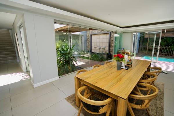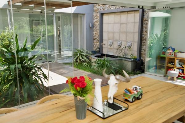 An atrium with water feature link the bedrooms to the living area through seamless stackers and allow for all day light to the passages leading to 3 well sized bedrooms, all with ensuite bathrooms while the main bedroom also offers views over the splash pool and evergreen golf course.