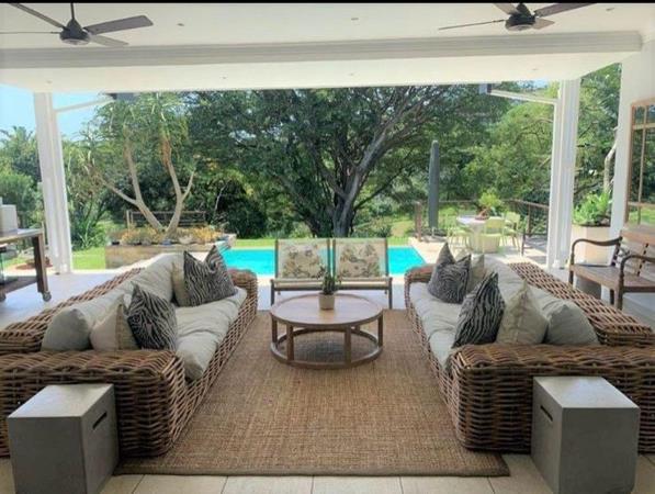 This beautifully designed home in Simbithi Eco Estate with expansive patio and pool, offers views over the third fairway, a tranquil dam, and little bridge.
