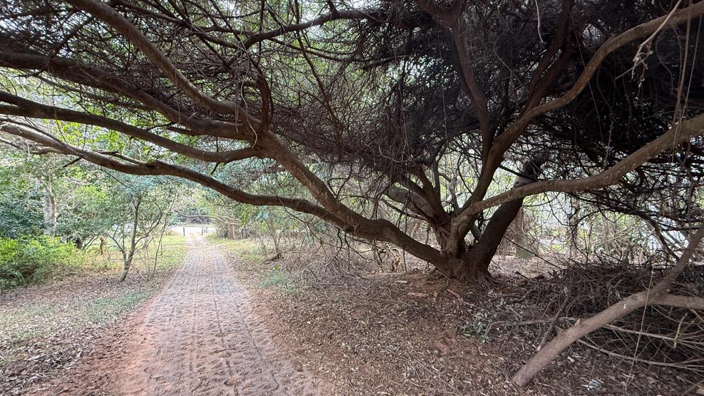 The stand is surrounded by lush natural vegetation, creating a tranquil, private setting with the added charm of distant sea views. Its location near a quiet cul-de-sac ensures minimal traffic, enhancing the peaceful ambiance of estate living.