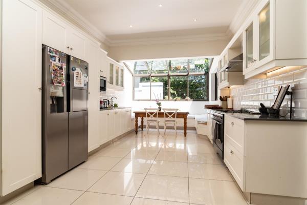 The open-plan living and dining area flows seamlessly into the kitchen, where a striking use of glass brings natural light and a sense of opennessideal for both family living and entertaining.