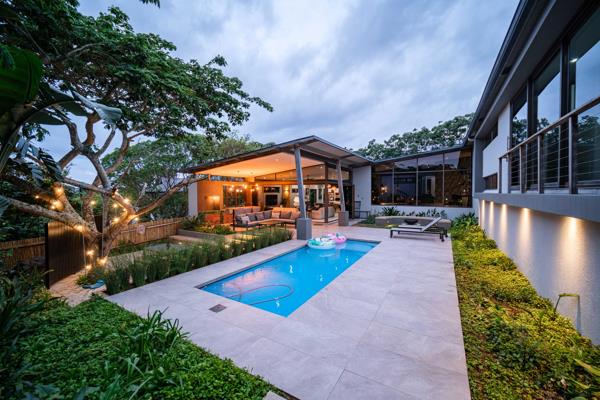 Experience the epitome of coastal luxury in this exquisite Simbithi Eco Estate home, where open-plan living meets modern elegance. The expansive living area flows effortlessly through large glass sliders onto a stunning entertainment space featuring a sparkling pool, fire pit, and braai areaperfect for relaxed afternoons or elegant evening gatherings. Every element has been designed for comfort and style, creating an inviting atmosphere ideal for both family living and entertaining guests.