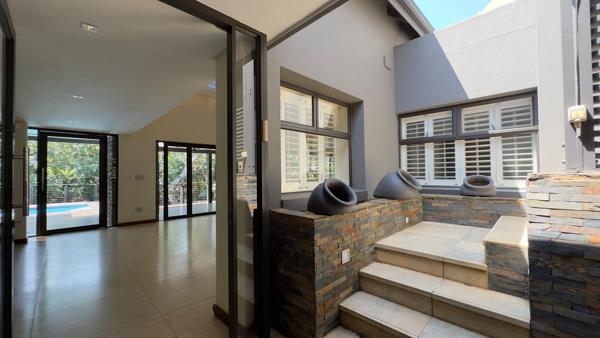 The well-appointed kitchen sits at the heart of the home and features a walk-in pantry, separate scullery, double five-burner gas hobs, double under-counter ovens and a built-in microwaveperfectly suited to both everyday living and entertaining. A solar power system with backup ensures energy efficiency and uninterrupted comfort, completing this exceptional home that balances luxury, functionality and flexible living within one of the estates most desirable addresses. Contact Meecke today to arrange a viewing.