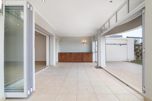 The air-conditioned open plan living room has an easy flow to the glass enclosed outdoor living area with a built-in serving counter on the verandah which adjoins the level garden. This integrated layout provides a continuous indoor-outdoor interaction which considerably enhances both the living spaces as well as easy entertaining.