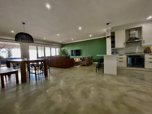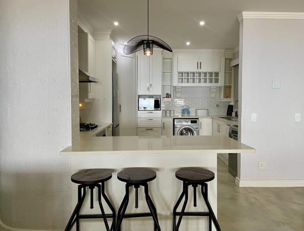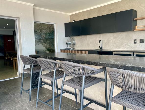 Step through the elegant glass stack doors from the lounge and dining area into the enclosed entertainment room. This versatile space is perfect for year-round entertaining, equipped with a portable gas braai and a convenient bar fridge with plenty of cupboard space. The room offers a cozy spot to relax and enjoy the mesmerizing ocean views, no matter the weather.