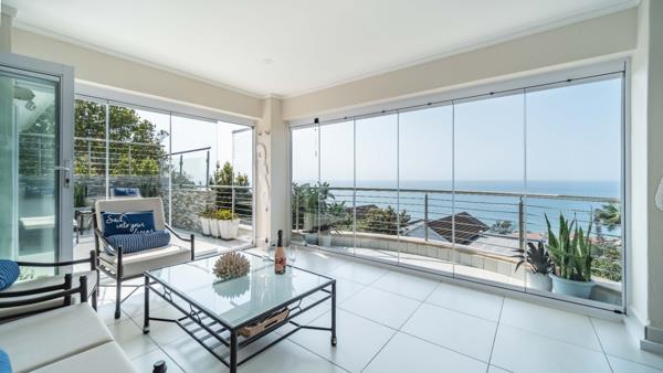The spacious enclosed patio maximizes natural light and panoramic views through farmless glass stacking doors, with seamless flow from the modern open-plan living areas to the enclosed patio. The stylish indoor-outdoor space is where you can entertain or simply soak up the spectacular ocean vistas, stretching uninterrupted views from Ballito to Sheffield Beach.