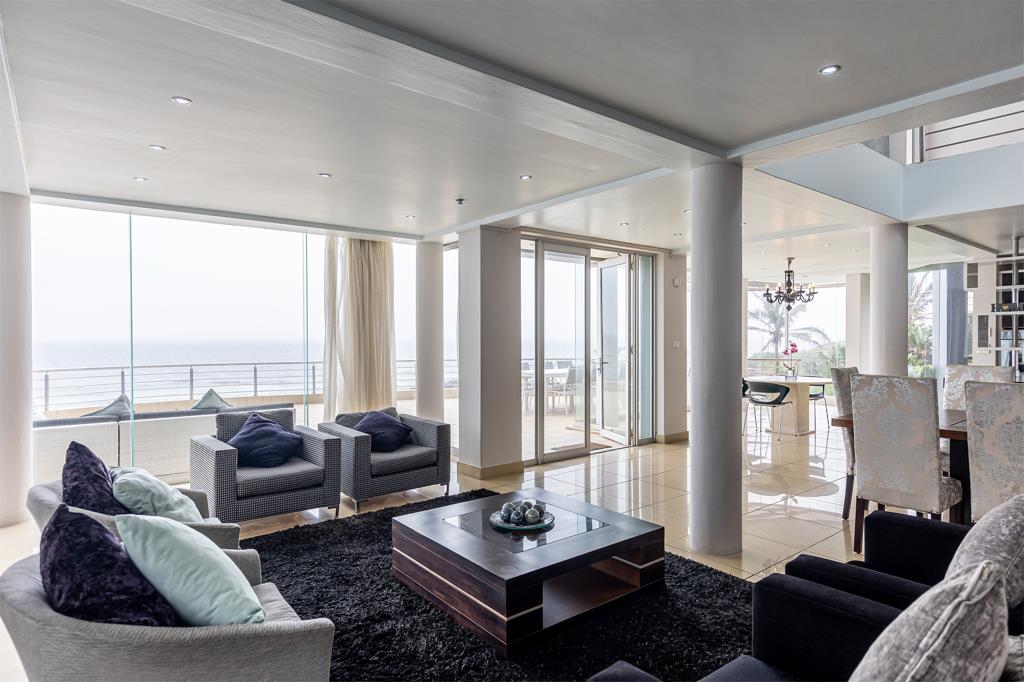 Perched on elevated beachfront land, this extraordinary coastal home offers a harmonious blend of luxury, elegance, and breathtaking 180-degree views of the majestic Indian Ocean. From the moment you step through the grand double-volume entrance hall, you are immersed in a world of sophisticated seaside living.