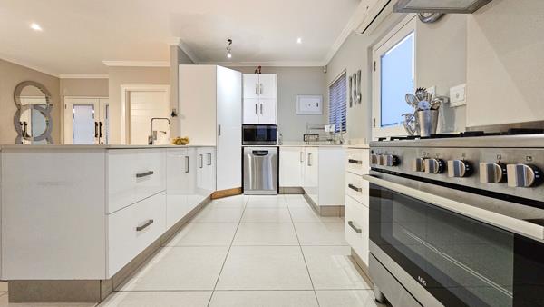 Exquisite and luxurious modern golf estate residence. Located within Umhlali Country Club, this exceptional estate villa offers a perfect balance between modern taste and comfortable space. On entry the property offers ample parking, with additional storage space within the garage as well as a dedicated laundry room that could potentially be used as staff accommodation. The open plan living area is tastefully decorated, with stacking doors that open up and connect the large garden out back, to the lounge, that opens up further to the enclosed patio on the poolside with frameless glass.