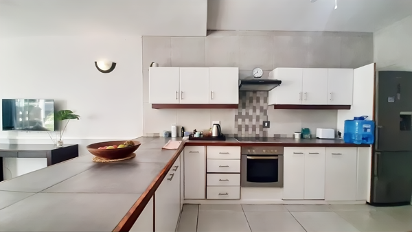 This ground-floor, 3-bedroom unit offers excellent privacy and is located in a secure complex. Ideally situated within walking distance to the beach, this home boasts a spacious open-plan living area that flows seamlessly onto an undercover patio with a built-in braai area, perfect for entertaining. The kitchen is well-appointed with ample cupboard space.