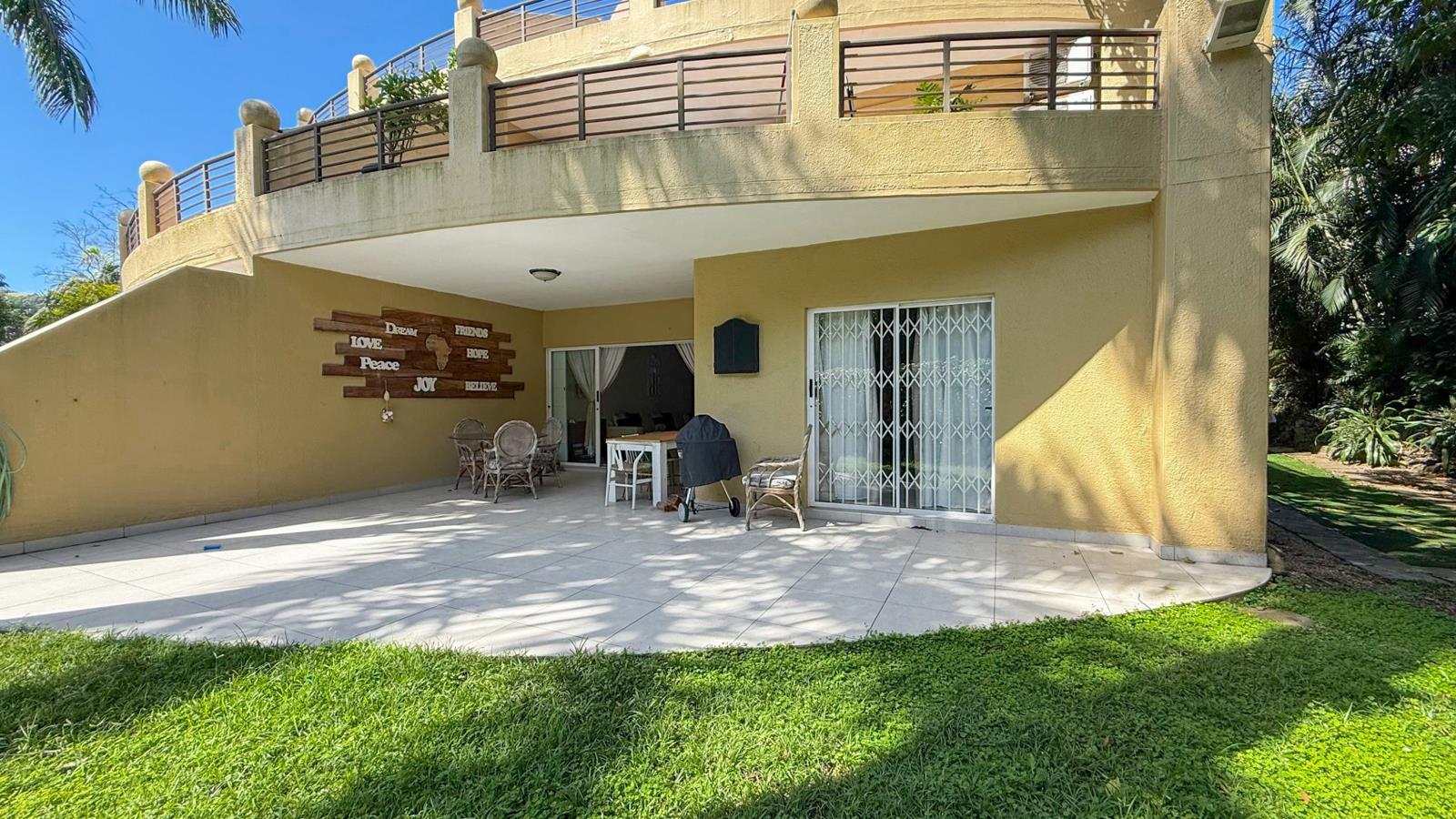 The apartment extends outdoors to a spacious private garden, offering a tranquil retreat. The complex itself is enveloped by lush trees, creating a serene ambience, and features a refreshing swimming pool just a short stroll from the unit.