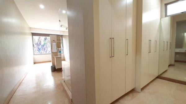 The open plan layout is elegant and sophisticated in its decor and large expanses of glass doors to maximize those breathtaking views. The elegant kitchen is spacious and fitted with Caesarstone countertops, ample cabinetry, a Bosch gas hob and electric oven, a kitchen island with a breakfast nook, and a separate scullery.
