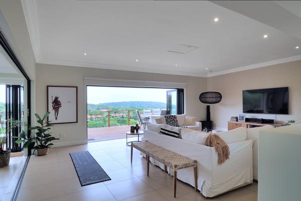 Positioned in one of Zimbalis most desirable lakefront settings, this modern, light-filled sanctuary offers the perfect balance between refined luxury and relaxed coastal living. Designed to maximise natural light and embrace its remarkable surroundings, the home showcases open-plan living at its finest with expansive stacking doors that invite the outdoors in and frame magnificent panoramic views across the tranquil lake, the Zimbali golf course, and the Indian Ocean beyond.