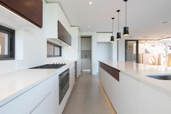 This light and the caress of the ocean breeze is enhanced by plentiful large aluminium glass sliding doors. The lower level enjoys forest vistas, and entrance onto the front pool balcony with a gas braai or the rear enclosed suncatcher courtyard. The kitchen offers a Smeg oven and 5-burner gas hob, Caesarstone counter-tops, and a separate scullery with connections for 3 appliances and a pantry area. This enviably lock-up-and-go lifestyle is further enhanced by ducted air-conditioning throughout. Two of the spacious bedrooms benefit from en-suite bathrooms, whilst a guest toilet is located downstairs.