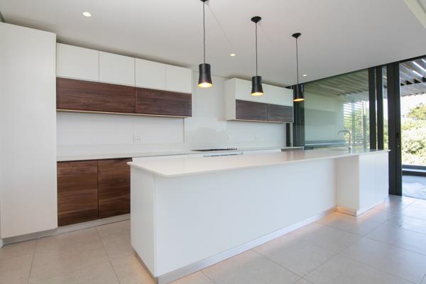 This light and the caress of the ocean breeze is enhanced by plentiful large aluminium glass sliding doors. The lower level enjoys forest vistas, and entrance onto the front pool balcony with gas braai or the rear enclosed suncatcher courtyard. The kitchen offers a Smeg oven and 5-burner gas hob, Caesarstone counter-tops, and a separate scullery with connections for 3 appliances and a pantry area. This enviably lock-up-and-go lifestyle is further enhanced by ducted air-conditioning throughout. All three of the spacious bedrooms benefit from en-suite bathrooms, whilst a guest toilet is located downstairs.