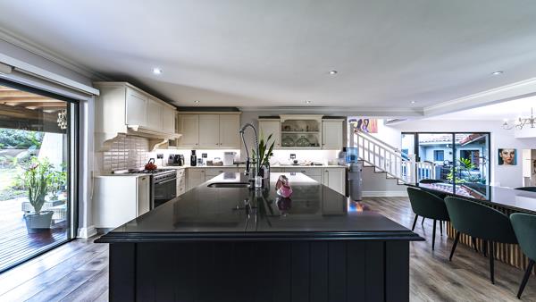 The first level which leads out onto a large level garden offers 2 lounges, 2 dining areas, and an open-plan fitted kitchen with a center island, laundry, and scullery. Which all flow to a large undercover entertainment deck with a private pool and a built-in gas braai.