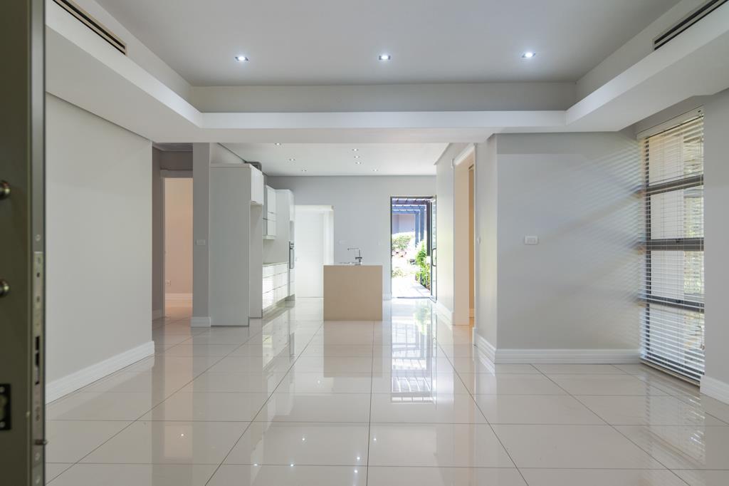 The contemporary kitchen, complete with a discreet scullery, keeps meal preparation tucked away, ensuring the main kitchen remains immaculate. Seamless flow into the dining area creates the ideal setting for effortless entertaining and refined dining experiences. The spacious lounge integrates smoothly with an enclosed patio equipped with a built-in gas braai, extending the living space for year-round enjoyment. Large sliding doors connect or separate these areas as needed, offering flexibility for both intimate family moments and larger gatherings. Accommodation includes three generously sized bedrooms plus an additional room ideal for a dedicated study or optional fourth bedroom. The primary suite stands out with its luxurious full bathroom and abundant cupboard space, offering a serene retreat at the end of the day. Additional features include a double garage with direct access into the home, enhancing convenience and security, as well as visitor parking situated directly opposite the property.