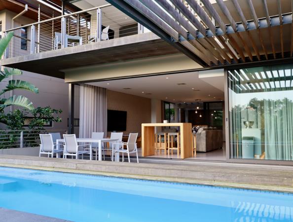 The front patio with a braai area and an inviting pool looks out over the lush private landscape. The back patio is ideal if a protected entertainment space is required. This property has been professionally styled and furnished, and the movables can be negotiated if of interest.