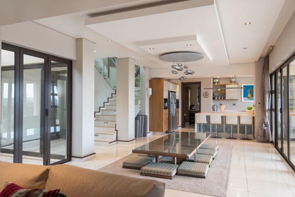 Commanding an elevated position this home offers gorgeous views of the Ocean. A spectacular contemporary design this boasts the ultimate in luxury and privacy. On the upper ground level, you are welcomed by the entrance hall and lounge that leads out onto a balcony that opens up with stacking doors and offers inspiring views. All four bedrooms with en-suite bathrooms are on this level. The lower level has stack-away doors throughout the open-plan living area. when opened the space integrates seamlessly with the outdoor spaces.
