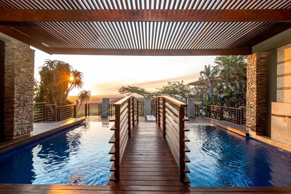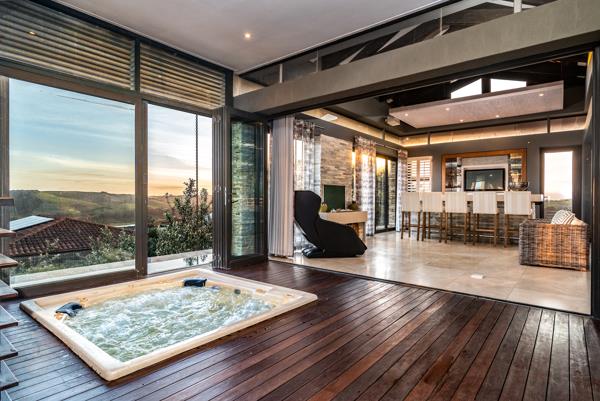***Sole&Exclusive Mandate to Seeff Zimbali*** A masterpiece of design and build quality, this impressive home will delight all that have the privilege of experiencing its splendour. Imagine a site positioned at the very pinnacle of a beautifully elevated hill with astounding vistas over Zimbali, the Tongati River Valley and an ocean horizon line from as far as you can see from the south to the north. That elusive Wow factor is evident the minute you walk over the bridge at the front door and enter into a space that seems like a water wonderland.