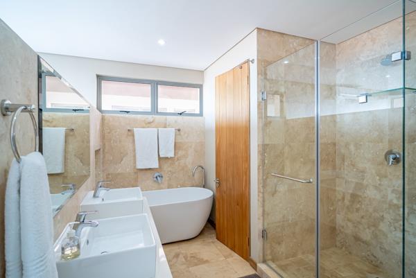 Plantations presents 13 contemporary townhouses situated in a prime location close to the new Capital Hotel and Zimbalis South Gate, offering either ocean or forest views. The development consists of 12 semi-detached units and one freestanding home, arranged in three rows: the top row enjoys sea views, the central row features the freestanding unit, and the bottom row overlooks lush forest greenery. Each townhouse boasts seamless indoor-outdoor living, air conditioning, a fully equipped kitchen, and access to a communal swimming pool. Units in the top and central rows come with double garages and golf-cart garages, while bottom row properties offer pergola-covered parking. The monthly Body Corporate Levy is R2,000.