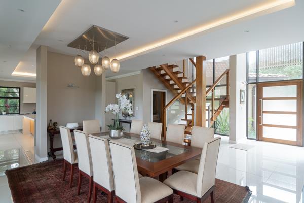 **SOLE & EXCLUSIVE MANDATE** Nestled amidst lush greenbelt and fairways, this remarkable residence is thoughtfully designed to blend elegance with functionality. The home enjoys breathtaking 180-degree views of natural beauty across the fairways, dams and out to the ocean. The double-volume living areas exude openness and light, leading out to an impressive undercover patio and poolperfectly designed for year-round enjoyment. Whether hosting or enjoying quiet moments of relaxation, the outdoor spaces provide an idyllic setting.