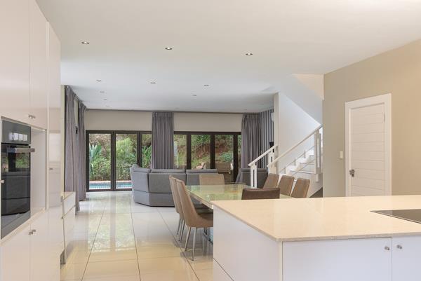 The design of this home caters to free-flowing living spaces that lead out to your own private sanctuary garden with a swimming pool. The modern finishes coupled with the crisp and clean interiors make this home instantly appealing. The large living spaces are all located on the ground level and are further enhanced by sliding doors that open out to a covered patio and entertainment space. The kitchen is of modern design and is well appointed, lending itself well to effortless entertaining.