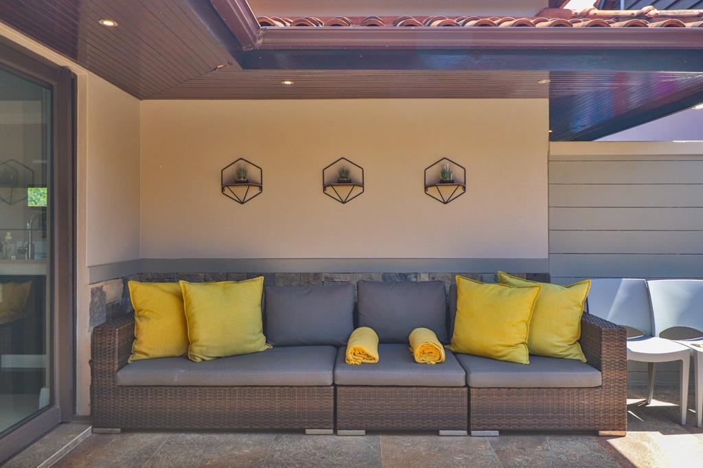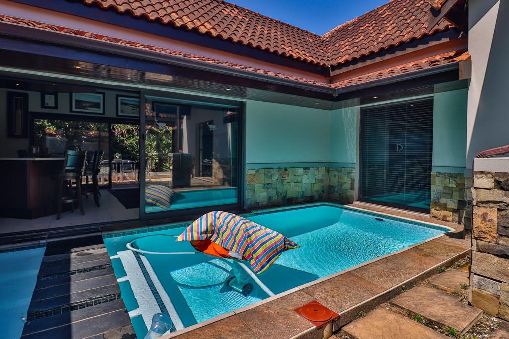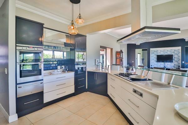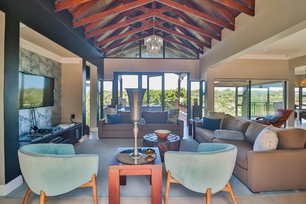 A bespoke bar room connects both to a sheltered pool courtyard with a built-in braai and a peaceful outdoor seating area.