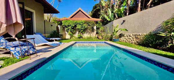 On arrival, the sense of presence is undeniable. Gentle gradients lead into an impressive visitors parking area and triple lock-up garage. Balinese-inspired architecture is accentuated with timber columns framing the front door, while bamboo palms soften the facade and create a warm, welcoming atmosphere. Staff accommodation is provided and well appointed. This property strikes the perfect balance between luxury, privacy, and natural beauty a true sanctuary in the heart of Zimbali.