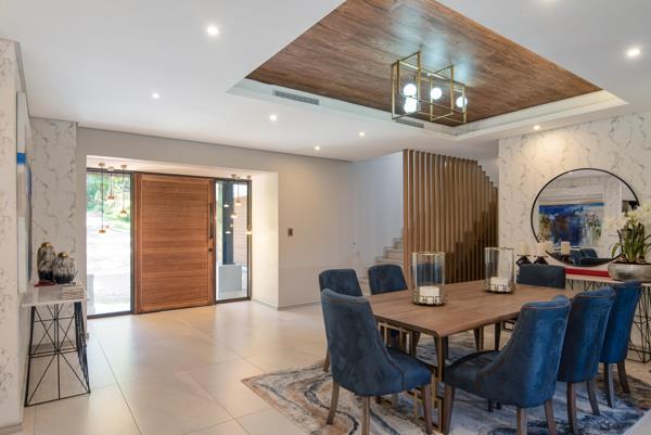 The upper accommodation level is quaint and intimate, with all 3 bedrooms each offering en-suite bathrooms. The bonus is a self-contained guest suite above the double garage, with its own access, pitched eaves, wooden sliding doors with a Juliet balcony. This property represents excellent freehold home value within Zimbali Estate.