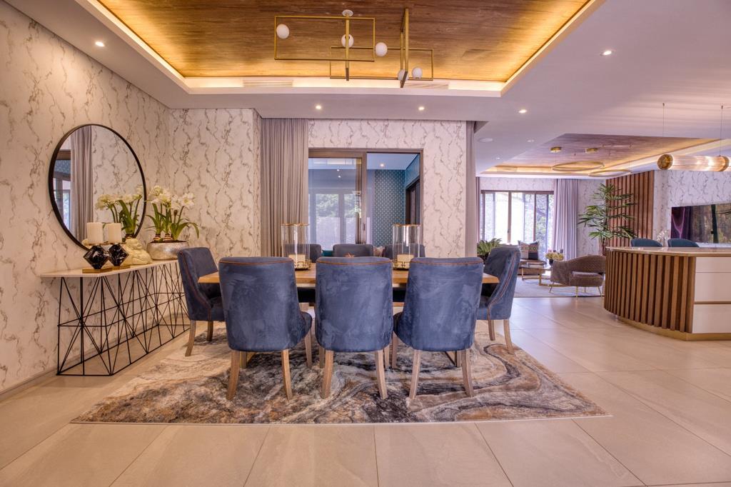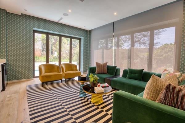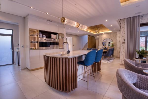 The upper level offers a cozy and intimate space with three bedrooms, each featuring its own en-suite bathroom. Additionally, a self-contained guest suite above the double garage includes private access, pitched eaves, and wooden sliding doors leading to a Juliet balcony. This property offers exceptional value as a freehold home within Zimbali Estate.