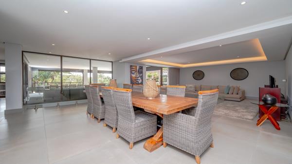 Step out from the kitchen to the outdoor entertainment area, where you''ll find another 10-seater dining room and a large lounge space, all conveniently sheltered under a roof. This area is designed for year-round enjoyment, making it perfect in any weather. The outdoor space is complemented by a gas built-in braai, ensuring you can savor those outdoor flavors whenever you desire.